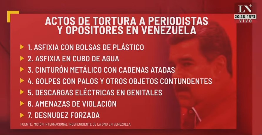 Los resultados revelados de ese informe fueron pavorosos sobre los actos de tortura a periodistas y opositores perpetrados por el régimen de Maduro, algo que graficó La Nación+ desde Argentina: