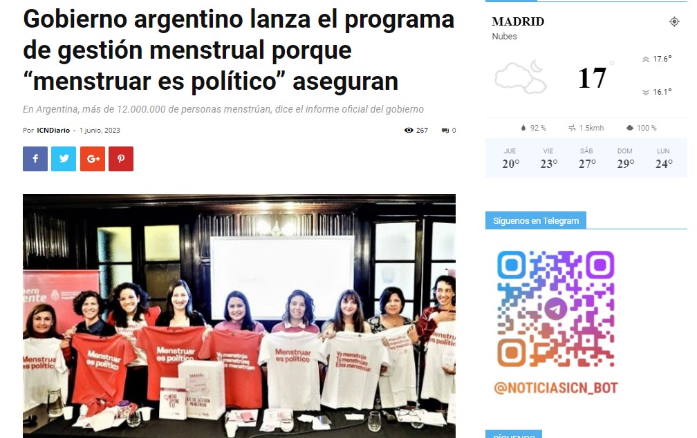 LEA: Gobierno argentino lanza el programa de gestión menstrual porque “menstruar es político” aseguran