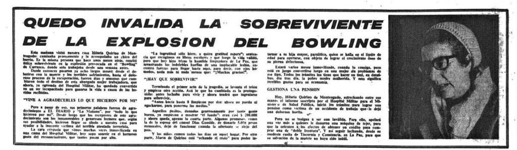 Conviene recordar también – entre una lista extensa de víctimas y familias identificadas – el caso de Hilaria Quirino, una madre que se desempeñaba como cuidadora del Club de Bowling de Carrasco, que en el atentado terrorista de los tupamaros fue herida de gravedad y nunca logró recuperarse de aquel trágico e injusto episodio que la marcó a fuego hasta el final de sus días. Ni ella, ni sus cuatro hijos – que quedaron solos y desamparados – recibieron justicia desde el atentado en 1970, en democracia.