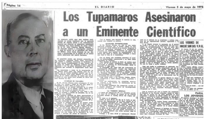 Dr. Julio Federico Morato Manara, asesinado por los tupamaros en su domicilio cuando intentaron robarle material quirúrgico y sus armas de colección. El eminente y reconocido científico se resistió al ataque de los tupamaros y se trabó en lucha con los terroristas quienes le dispararon a quemarropa sin ningún reparo. Murió en el lugar ante su esposa mientras los asesinos se dieron a la fuga – 04/05/72