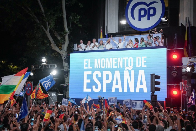 Ya con el 99% del voto escrutado en España, el PP obtiene 136 escaños en el Congreso de los Diputados; el PSOE, en segundo lugar consigue 122 bancas; Vox, 33; y Sumar, 31.
