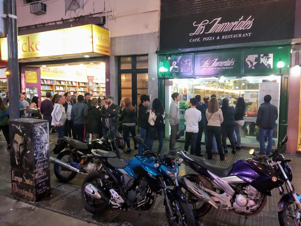La famosa pizzería Guerrín tiene comensales esperando en la puerta del comercio y lo mismo ocurre en Los Inmortales, en Banchero o La Americana y en el restaurante El Palacio de la Papa Frita, entre otros tantos lugares de Corrientes, la calle que nunca duerme…