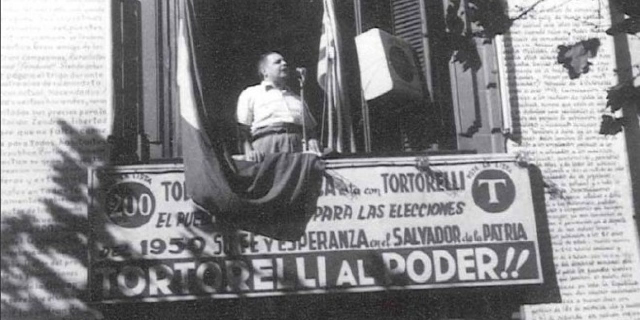 Comparación final: en las elecciones de 1942, su fiel escudera era su esposa, Anatolia Manrupe de Tortorelli que también aparecía como vice. Hoy Milei tiene en su hermana Karina, su apoyo en las propuestas que presenta.