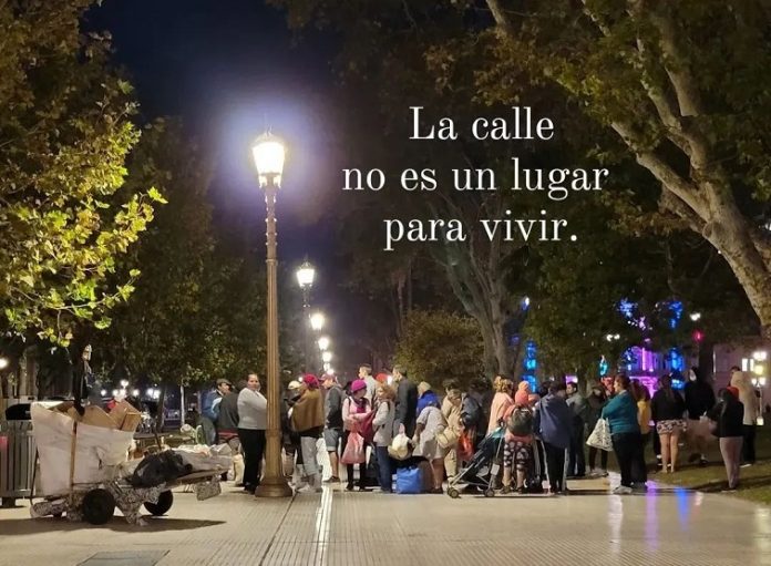La imagen que ilustra este artículo, se produce en la noche y no es de una fila de personas para ingresar a un cine, es gente que va en busca de un plato de comida caliente frente a la Catedral de Buenos Aires, a pocos metros de la Casa Rosada, sede de la Presidencia en la Plaza de Mayo. Comida que reparte la ONG Red Solidaria entre personas sin recursos.