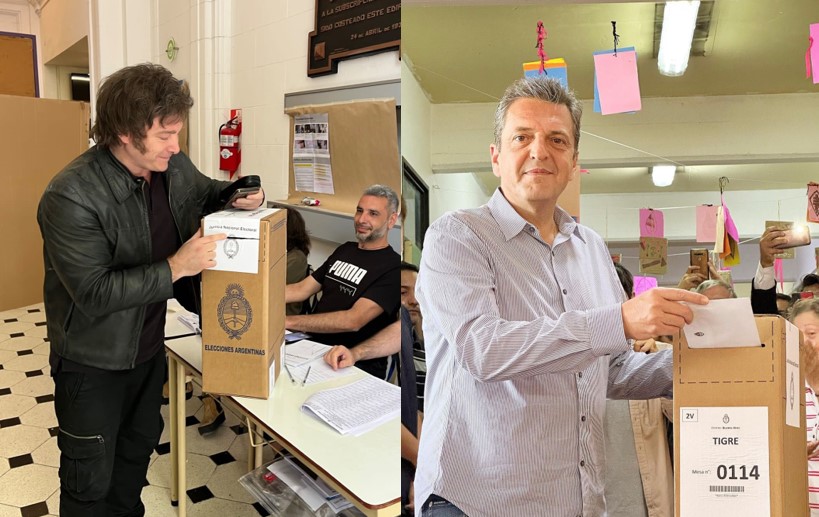 Con el 86,59% de mesas escrutadas los porcentajes son 55,95% para Milei y 44,04 para Massa.