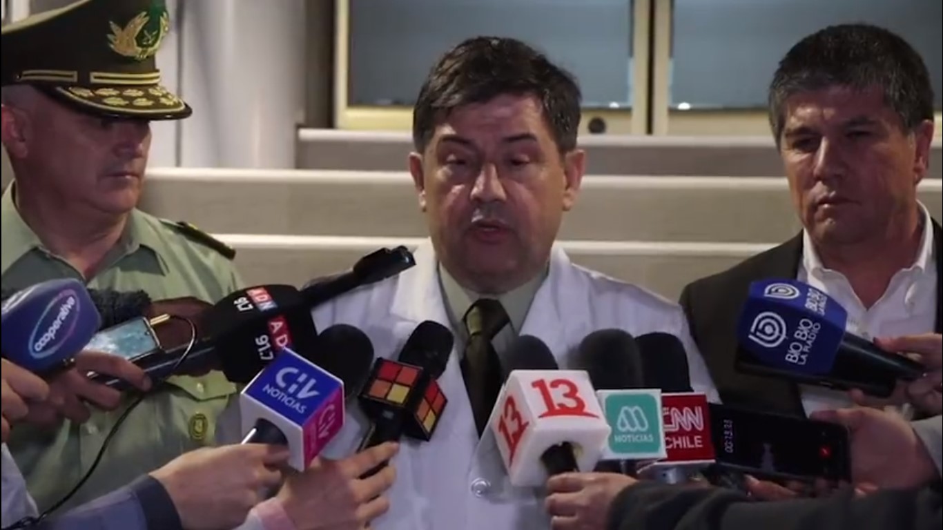 El Director de Sanidad, General Cristián Matus, informa sobre el grave estado de salud de la policía afectada.