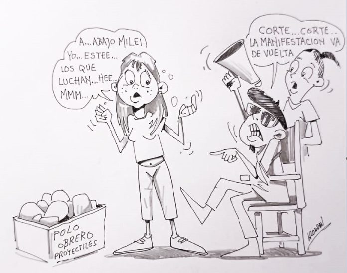 Organizan marchas de protesta contra el nuevo gobierno de Milei y requieren “actores” para personificar a los manifestantes. Todo muy cuidado… Salvo cuando faltan los intérpretes protagónicos y se debe acudir a los reemplazos, que ignoran la letra del guion.
