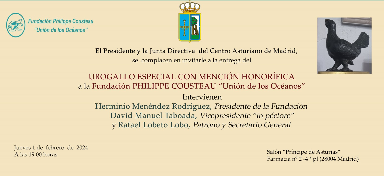 Será este jueves 1 de febrero un día de intensas emociones para quienes integramos la Fundación Philippe Cousteau “Unión de los Océanos”; el Centro Asturiano de Madrid reconocerá nuestra labor constante en la protección de los mares y el medio ambiente.