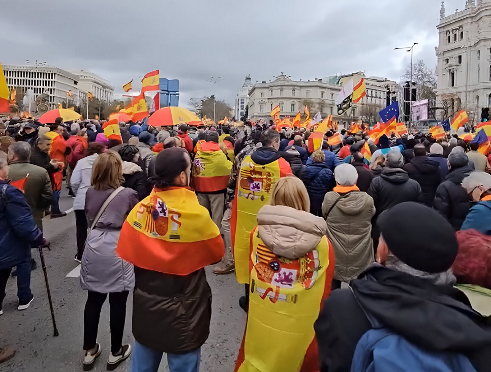 En Madrid, en la emblemática Plaza de Cibeles,  como también en otras ciudades, miles de ciudadanos españoles han protestado este sábado por la amnistía otorgada por el presidente Pedro Sánchez a separatistas catalanes para mantenerse en el poder, a cambio de 7 votos en el Congreso que le permiten gobernar, pero bajo las exigencias de los independentistas de Junts liderados por el fugado de la Justicia española, Carles Puigdemont.