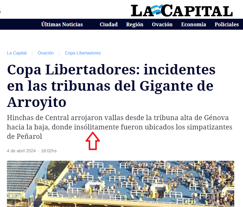 El propio diario de Rosario “La Capital” ya había dejado en evidencia la inapropiada decisión de los dirigentes rosarinos, que ubicaron en una platea a los hinchas de Peñarol, justo debajo de una tribuna ocupada por la barrabrava de Central, dejándolos a merced de los ataques violentos que se produjeron.
