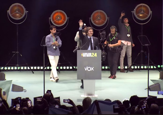 El presidente de la República Argentina, Javier Milei, ha participado este domingo en el evento político VIVA 24 con el que el partido Vox de España ha comenzado su campaña para las elecciones europeas.