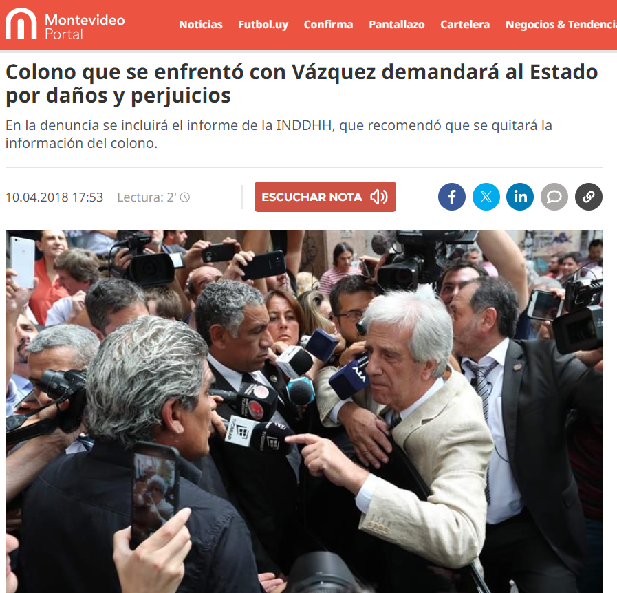 Recordemos la diferencia: Cuando un colono increpó al entonces presidente Tabaré Vázquez, terminó lapidado y expuesto públicamente en la web oficial de la Presidencia.