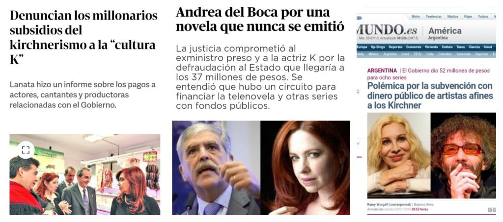 Tal el caso de la actriz Andrea del Boca, que terminó procesada junto a Julio de Vido, un ministro del gobierno de Cristina Kirchner, por no hacer una película a la que el Estado aportó millones de pesos.
