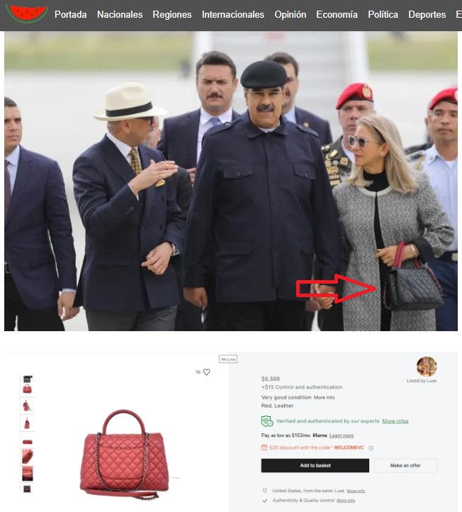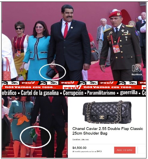 Según consigna Reportero 24, “Cilia Flores, esposa de Nicolás Maduro, lo volvió hacer, esta vez no fue la cadenita de oro sólido sino un bolso Channel, valorado en 4.500 dólares.