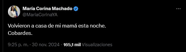 Ya, en días anteriores, el régimen ha hecho acciones de hostigamiento a la casa de la madre de Machado, con agentes encapuchados portando armas de grueso calibre.