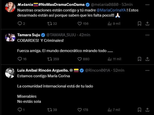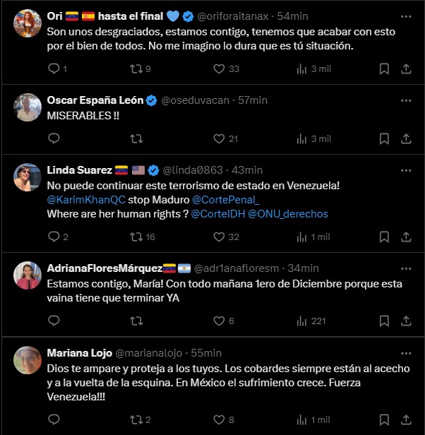 La dirigente de Vente Venezuela ha vuelto a reaccionar este sábado en redes sociales a la actitud de cobardía y hostigamiento del tirano Nicolás Maduro.