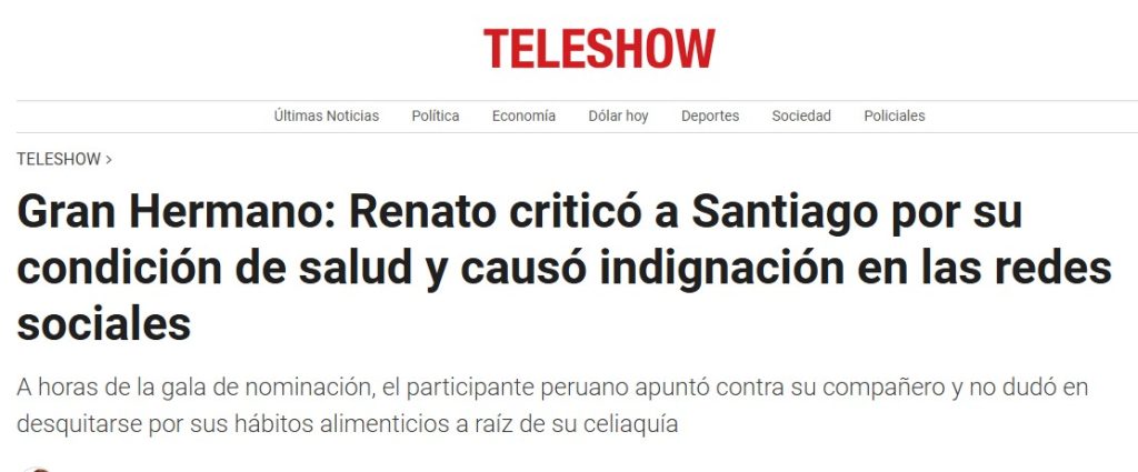 Y finalmente otro de los hechos que propiciaron la salida del peruano, fue su crítica a que Santiago es celíaco.