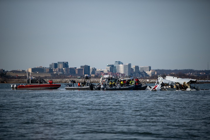 Los vigilantes del centro de comando de la Guardia Costera del Sector Maryland – Región Capital Nacional recibieron un informe aproximadamente a las 8:55 p. m. informando que un helicóptero y un avión comercial de pasajeros chocaron en las cercanías del Aeropuerto Ronald Reagan.