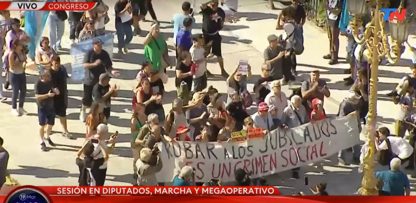 Las reclamaciones de los jubilados y pensionados se iniciaron tiempo atrás y cada miércoles realizan una marcha de protesta pacífica donde no más de 80 o 100 pasivos manifiestan por sus derechos sin provocar incidentes frente al Congreso argentino, en el centro de Buenos Aires.
