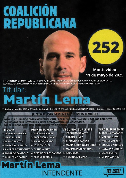 En la noche de este miércoles (23) la lista 252 de la Coalición Republicana, que postula a la Intendencia de Montevideo a Martín Lema, realizó la presentación de sus candidatos a la Junta Departamental de la capital, en un acto con adherentes en Malvín.