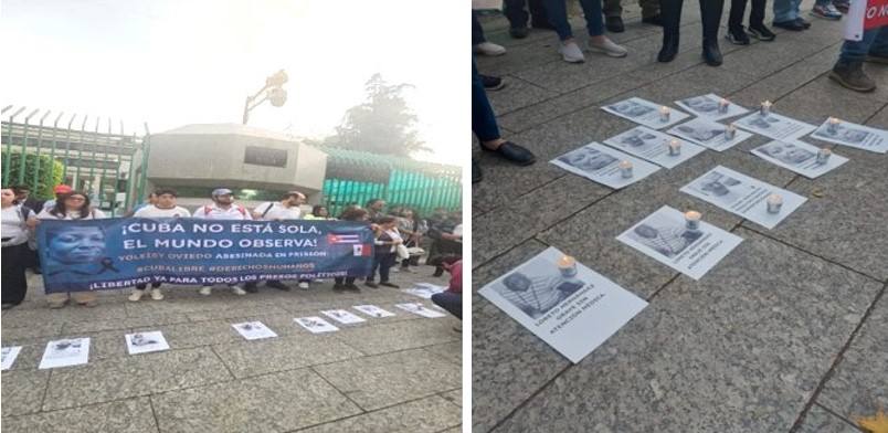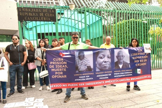 Miami, Florida – 23 de abril del 2025 – Asamblea de la Resistencia Cubana – Docenas de manifestantes protestaron frente a la Embajada castrista en Ciudad Mexico por la muerte bajo cautiverio de la presa política Yoleisy Oviedo y por la libertad de los presos políticos cubanos, enfatizando los casos de Miguel Díaz Bauza y Loreto Hernandez Garcia.