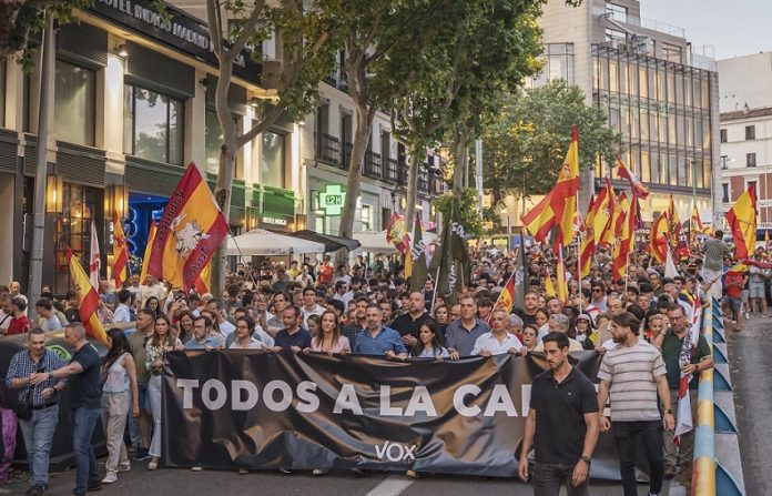 Madrid: marcha en protesta contra el gobierno de Pedro Sánchez pidiendo su dimisión ante los casos de corrupción que acorralan al PSOE
