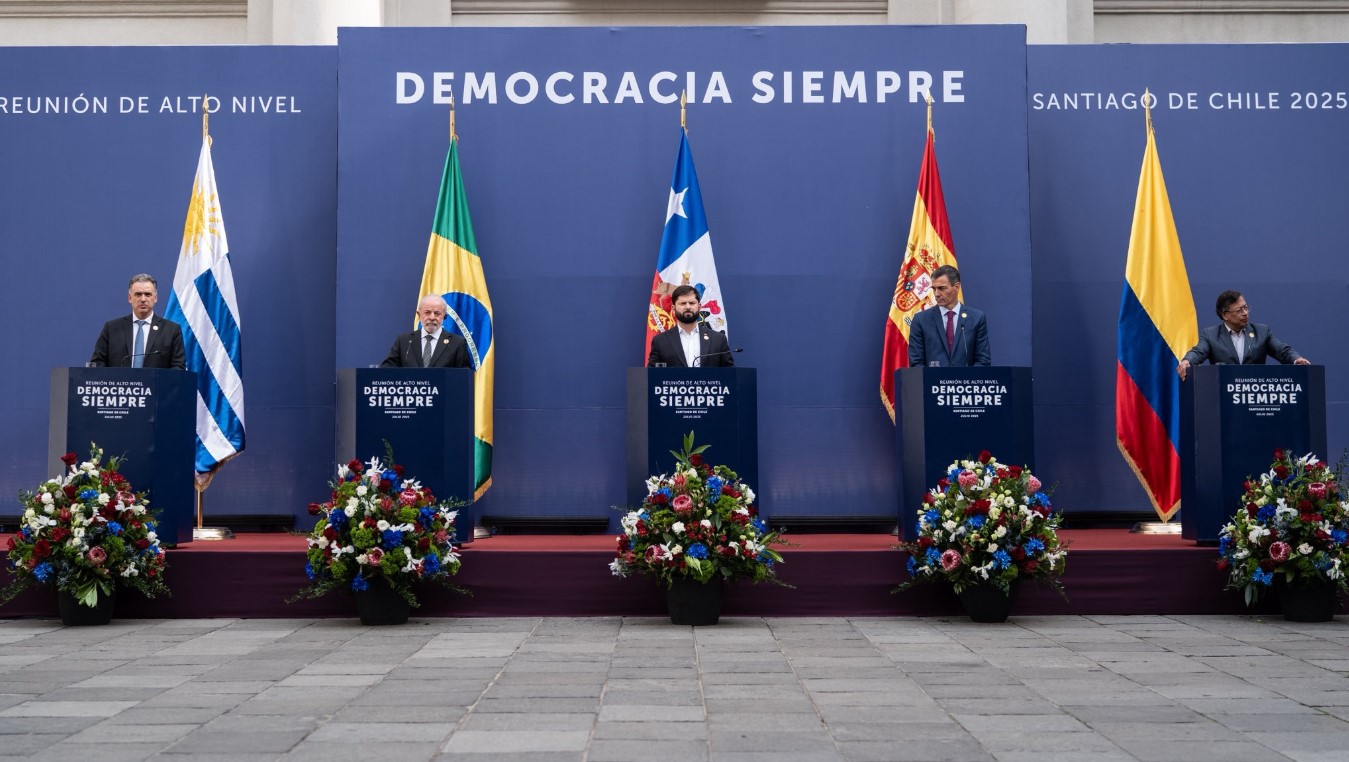 En la reunión de mandatarios progresistas de Chile, Brasil, Colombia, España y Uruguay, los cinco mandatarios han comparecido ante los medios para dar a conocer los temas tratados en la cumbre denominada “Democracia siempre”, donde se ha llamado a los “gobiernos progresistas” a estar unidos y “pasar a la ofensiva” en defensa de la democracia frente a la que se denomina la “internacional reaccionaria del odio y la mentira”, según explicó el presidente del Gobierno de España, Pedro Sánchez.