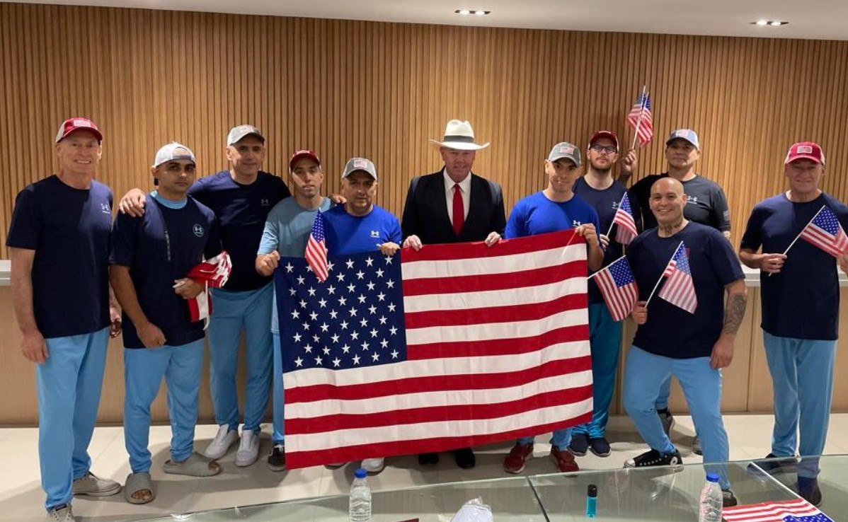 Nada representa la libertad como la bandera de los Estados Unidos. Diez estadounidenses liberados de prisiones venezolanas hoy están regresando a casa gracias a @POTUS, @SecRubio y @nayibbukele. América Primero en acción. pic.twitter.com/8tNX4UkUfR