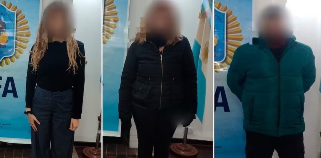 Como resultado de los operativos, detuvieron a tres personas, todas de nacionalidad argentina: Eva, de 69 años; Alexia, de 36 años, y Alberto, de 33 años.