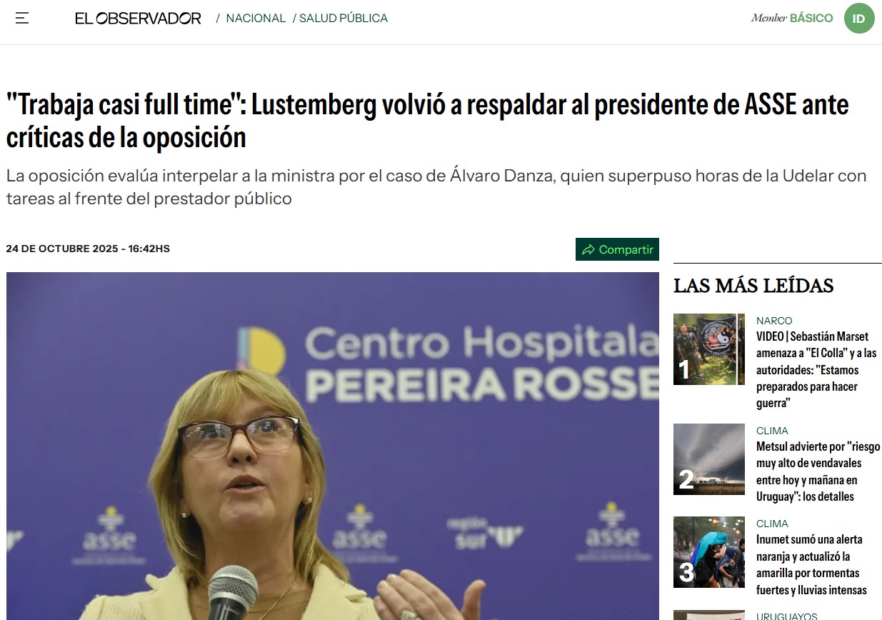 En resumen, además de presidir ASSE, mantiene al menos cuatro vínculos laborales: tres con mutualistas privadas y uno con la universidad, más ingresos por alquileres.