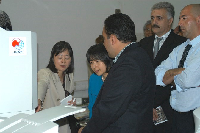 (La Princesa Sayako viendo en funcionamiento los equipos donados por su país)