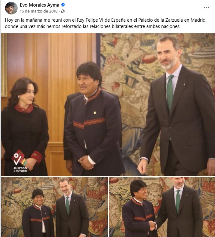 Se olvida Morales, cuando en 2018, volvía a España e iba a visitar al rey Felipe VI, entre sonrisas y honores.