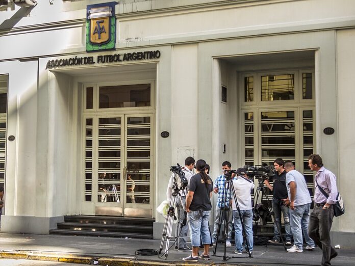 Medios de prensa en la puerta de la sede de la Asociación del Fútbol Argentino (AFA). Buenos Aires - Foto: Prensa AFA -Barcex