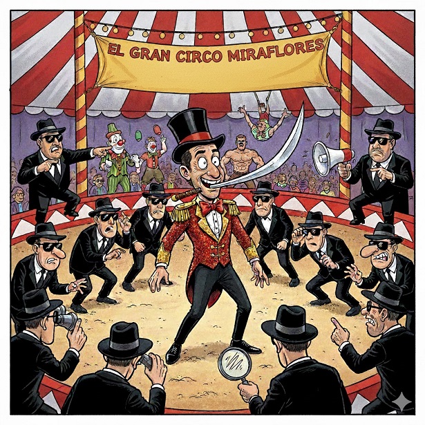 Lo único que nos queda es el consuelo del nuevo integrante del circo, el señor Capriles. Al menos él sí es fácil de vigilar: solo hay que seguir el rastro de aserrín que deja mientras ensaya su acto de tragasables. Él no se escapa; él se queda sentado esperando que Maduro le tire la siguiente espada para engullirla.