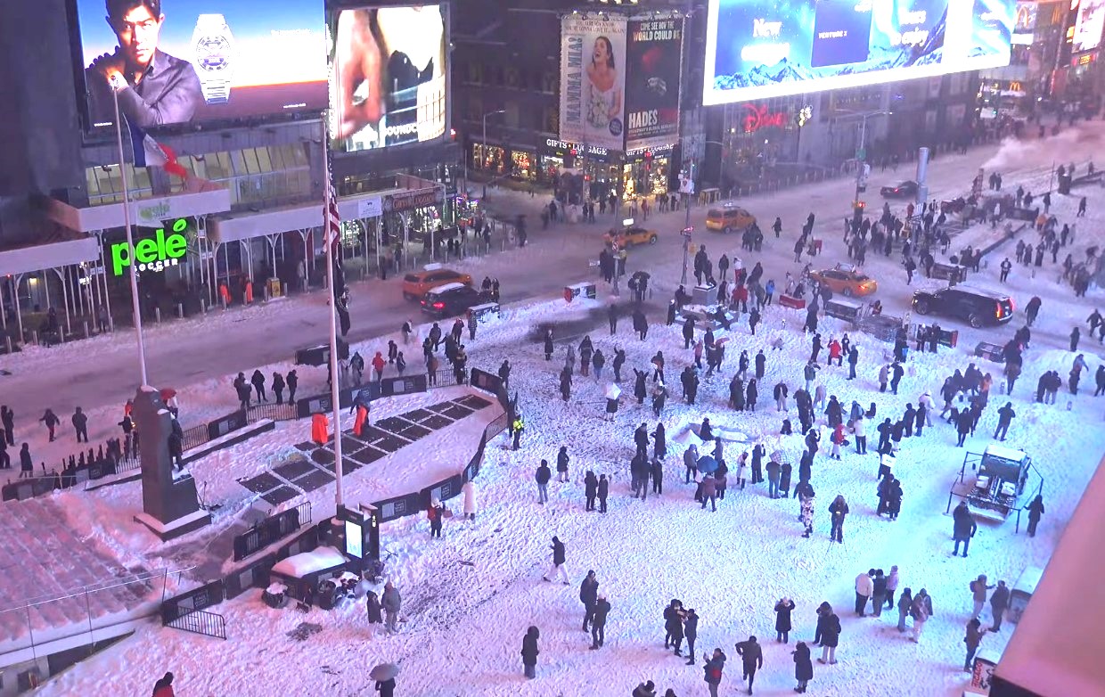 En la ciudad de Nueva York, el icónico Times Square ofrece una imagen de postal navideña tardía, con sus pantallas brillantes reflejándose sobre una espesa capa de nieve que se espera alcance entre los 25 y 40 centímetros. Aunque la escena atrae a turistas y curiosos, el alcalde Zohran Mamdani ha activado el “Código Azul” para proteger a las personas sin hogar y ha instado a los ciudadanos a permanecer en sus casas mientras los equipos de limpieza trabajan a contrarreloj.