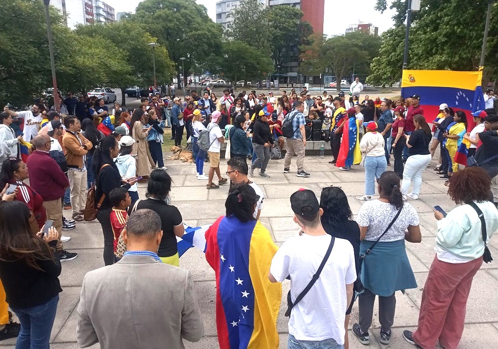 Uruguay no fue la excepción y allí en la zona de Tres Cruces en Montevideo, pronto comenzaron a llegar al lugar grupos de venezolanos, con pancartas y camisetas con los colores de su bandera y la emoción a flor de piel.