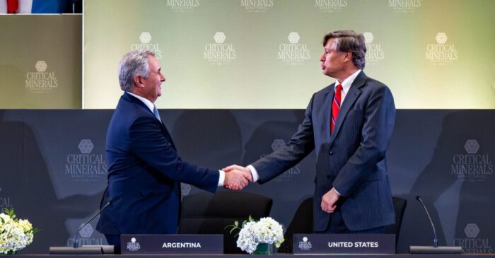 “La Argentina está comprometida en profundizar la cooperación con los Estados Unidos en materia de minerales críticos, apoyando cadenas de suministro seguras y promoviendo una asociación estratégica basada en reglas claras y previsibilidad en el largo plazo”, expresó el canciller argentino, Pablo Quirno.