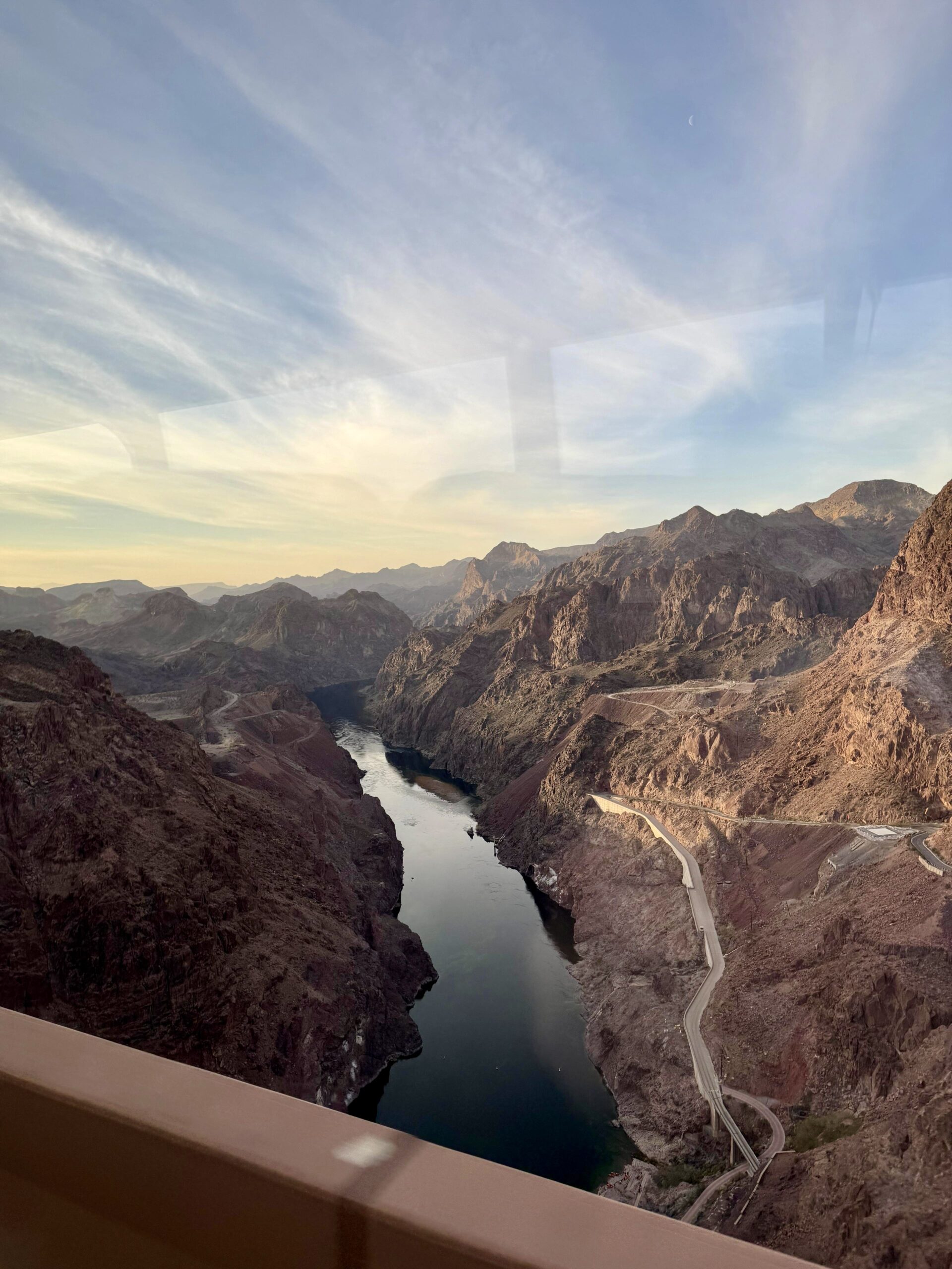El final del recorrido llega en el mirador, donde el contraste entre el lago Mead —cada vez más castigado por la sequía— y el vacío del cañón ofrece una metáfora casi inevitable: progreso y fragilidad conviven en un mismo golpe de vista.