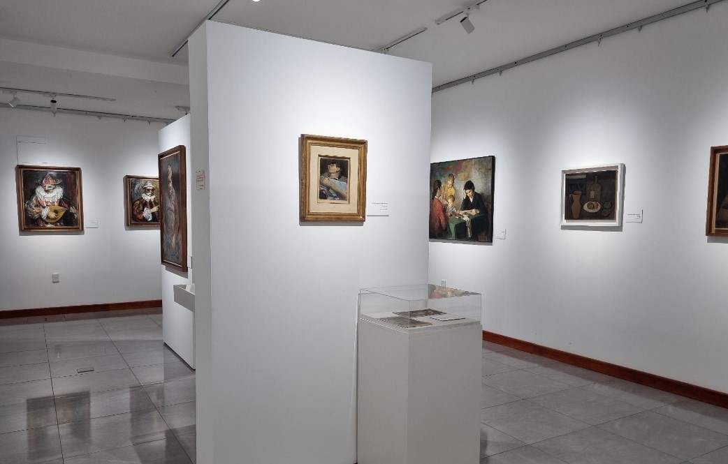 Según los textos que acompañan la muestra, Osvaldo Leite nació en Cruz de San Pedro, Rivera, en 1943, en un paraje rural en la frontera con Brasil. Su formación fue constante y exigente: primero en los talleres de su ciudad natal, luego becado por el Consejo Departamental de Rivera y la UNESCO para formarse con Edgardo Ribeiro, discípulo directo de Joaquín Torres García. La ficha curatorial destaca también un dato que merece recordarse especialmente: con apenas 21 años fue nombrado profesor de Dibujo y Pintura en el Museo Departamental de San José, donde trabajó durante años comprometido con el lugar, dejando huella en generaciones de estudiantes y en la vida cultural del departamento.