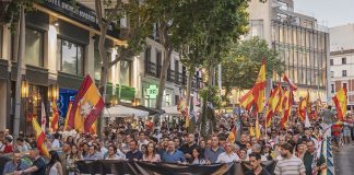 Madrid: marcha en protesta contra el gobierno de Pedro Sánchez pidiendo su dimisión ante los casos de corrupción que acorralan al PSOE