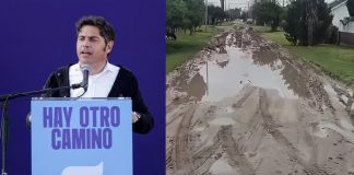 Gobernador Axel Kicillof en campaña política: “Hay otro camino” es el eslogan pero las calles de su provincia son de barro y se inundan con las lluvias