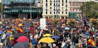 Masiva protesta de los españoles en el centro de Madrid exigiendo la dimisión de Pedro Sánchez y el llamado a elecciones