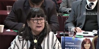Parlamentarios kirchneristas en el Parlasur reparten carteles: “No a la proscripción” de Cristina Kirchner