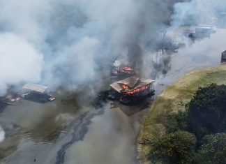 Brasil: la Policía Federal quema 302 balsas de minería ilegal en el río Madeira en el estado de Amazonas