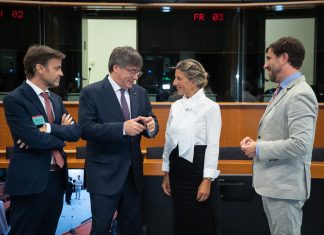 La vicepresidenta segunda de España la ultraizquierdista Yolanda Díaz humilla a la Justicia y se reúne con el fugado Puigdemont en Bruselas
