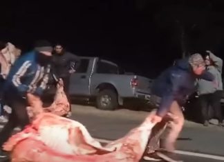 Esto pasa hoy en Argentina: volcó un camión con más de 20 mil kilos de carne y lo saquearon los vecinos