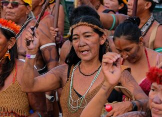 Alrededor de 90 integrantes del pueblo indígena Munduruku realizaron este viernes una protesta pacífica en la entrada principal de la 30ª Conferencia de las...